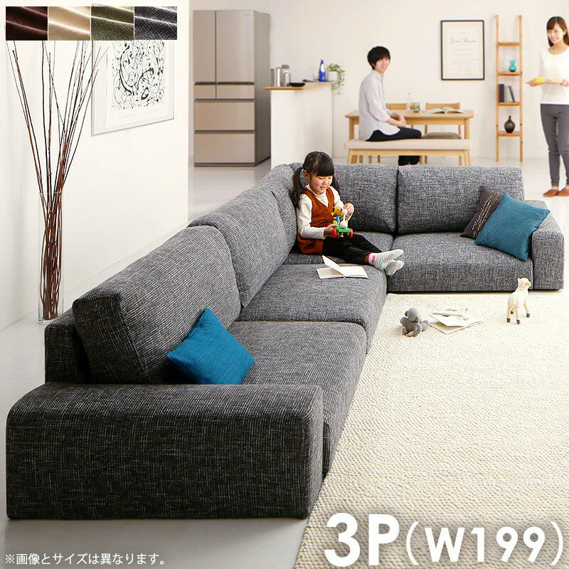 フロアソファ ロータイプ 3.5P コーナーカウチソファ Leeble リーブル ローソファー L字 l字ソファー 3.5人掛け ファブリック ブラウン アイボリー グレー モスグリーン (送料無料) 500034146